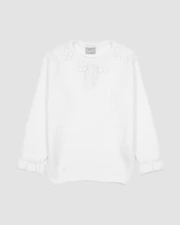 پلیور بافت دخترانه طرح آستین گلدوزی سفید