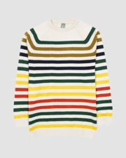 پلیور بافت پسرانه بانی نو طرح یقه گرد راه راه کرم