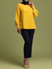 -65%تونیک زنانه کرپ آستین بلند قواره آزاد کلاسیک مهرناز زرد