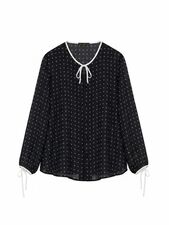 -60%شومیز زنانه سایز بزرگ آستین بلند حریر ژاکارد 30103 مشکی طرح دار
