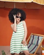 -50%سارافون بندی دخترانه طرح راه راه سبز