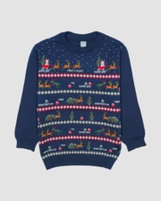 پلیور بافت پسرانه بانی نو طرح یقه گرد سورتمه سرمه ای