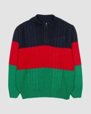 پلیور بافت پسرانه بانی نو طرح راه راه پهن سبز قرمز سورمه ای