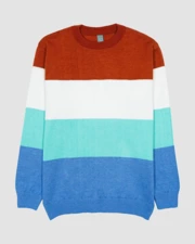 پلیور بافت پسرانه بانی نو طرح راه راه پهن سبز ابی