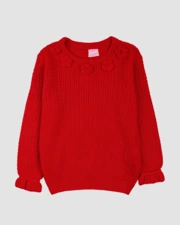 پلیور دخترانه بافت طرح یقه دراپه قرمز