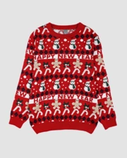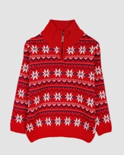 پلیور بافت پسرانه تمام ژاکارد آدم برفی قرمز
