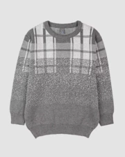 پلیور بافت پسرانه مدل یقه گرد طرح چهارخانه طوسی