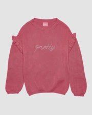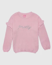 پلیور دخترانه بافت طرح PRETTY صورتی کثیف