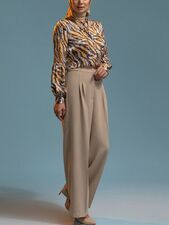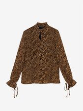 -50%شومیز زنانه ساتن طرحدار مجلسی یقه گره ای 30108 بژ
