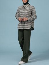 -65%تونیک زنانه پشمی چهارخونه یقه مردانه 50113 سبز