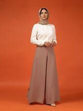 -50%دامن شلواری زنانه مجلسی فاق بلند کرپ 10102 کرم