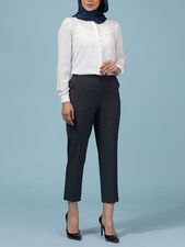 -70%شلوار زنانه پارچه ای کرپ مازراتی راسته دمپا پاکتی کلاسیک ایپک سفید