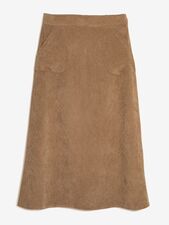 دامن زنانه مخمل کله قندی میدی جیب دار 20108 نسکافه ای