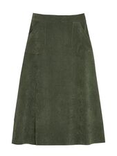 دامن زنانه مخمل کله قندی میدی جیب دار 20108 یشمی