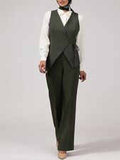 -40%وست زنانه پارچه دیپلمات یقه چپ و راستی آستر دار 70100 سبز