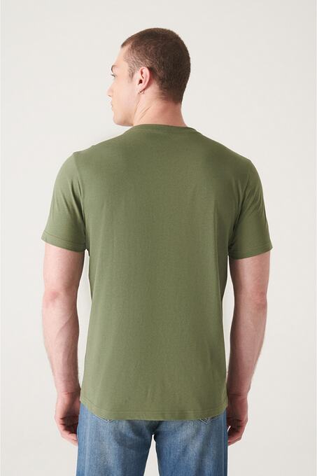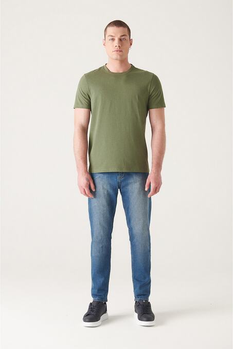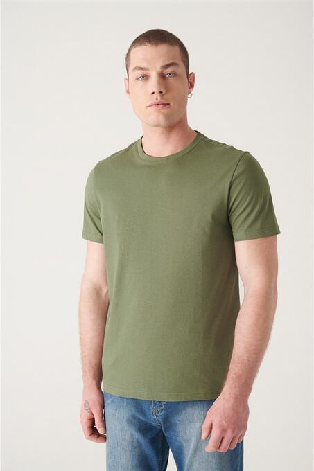 تی شرت آستین کوتاه آوا با کد 54539745 ( Erkek %100 Pamuk Haki Slim Fit Bisiklet Yaka T-shirt E001000 )