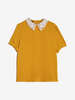 - بلوز زنانه آستین کوتاه پفی الیزه یقه گیپور کلاسیک شارلوت خردلی