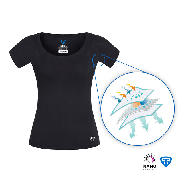 تیشرت ضد تعریق نانو آنتیباکتریال تاپیک دارای سه لایه پارچه در ناحیه زیربغل است که با دقت و ظرافت دوخته شدهاند. لایه میانی نقش کلیدی را ایفا میکند. این لایه از پارچهای دوطرفه تشکیل شده است: یک طرف آن خاصیت آبدوستی دارد که تعریق را از روی بدن جذب میکند، و طرف دیگر خاصیت آبگریزی که از عبور عرق به ناحیه زیربغل جلوگیری میکند. همچنین این لایه اجازه عبور هوا را میدهد و تهویه مناسبی را در طول روز فراهم میکند. شما میتوانید به صورت روزانه از تیشرت تاپیک استفاده کنید.