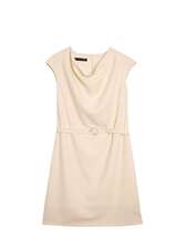 - پیراهن زنانه مجلسی کرپ یقه دراپه کمربند دار کلاسیک نارسیس سرخابی