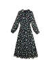 - پیراهن زنانه کرپ حریر طرح دار آستر دار کمر کش ساحلی کژوال تیام سرمه ای