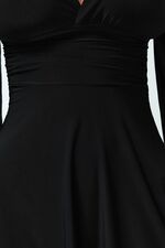 پیراهن زنانه کرپ حریر طرح دار آستر دار کمر کش ساحلی کژوال تیام سرمه ای