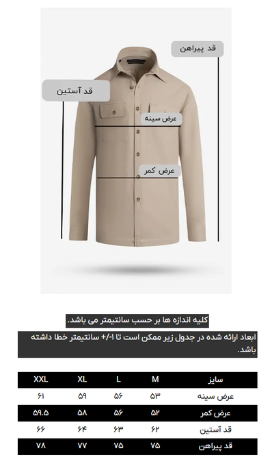 پیراهن آستین بلند، پارچه طرح دار ترکیبی از الیاف پنبه و لینن، دارای دو جیب روی سینه، آستین تک دکمه، ثبات رنگ در شستشو