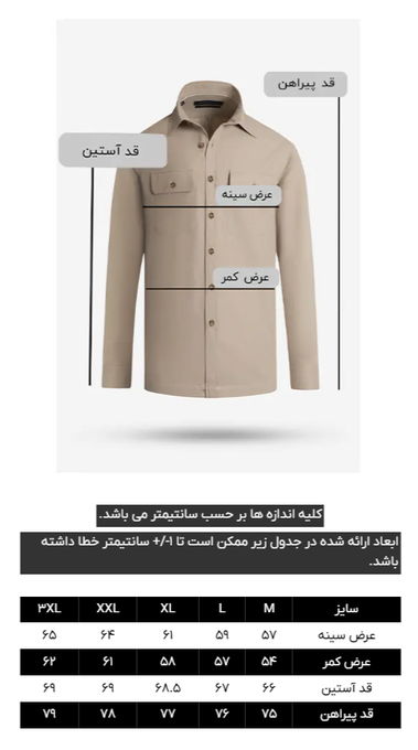 پیراهن آستین بلند ، دارای دو جیب روی سینه، آستین تک دکمه، ثبات رنگ در شستشو