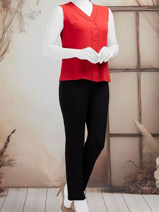 - تاپ زنانه کرپ حریر یقه هفت نوار دوزی شده کلاسیک پارمیس قرمز