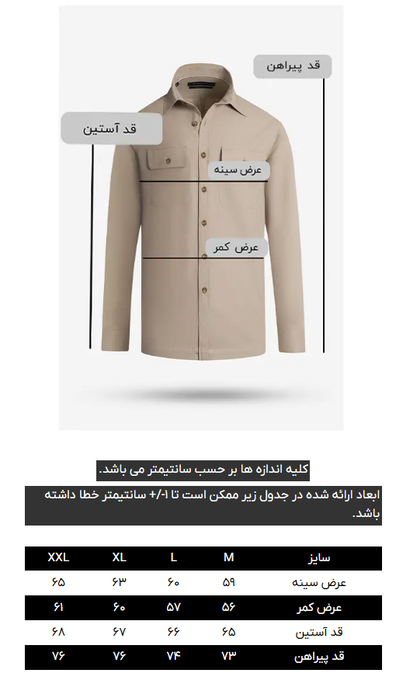 پیراهن آستین بلند، دارای دو جیب روی پیش سینه، آستین تک دکمه، ثبات رنگ در شستشو
