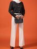 - شلوار زنانه پارچه ای کرپ کنزو از بالا کشاد ریزشی کلاسیک پرسته شیری