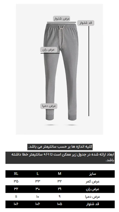 شلوار جاگر ، بافته شده از الیاف پنبه و آکریلیک، دمپا کشبافت، دارای کمربند جهت فیت کردن بهتر