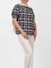- بلوز زنانه آستین کوتاه کرپ حریر طرح دار یقه گرد آستین پفی کژوال افروز مشکی سفید