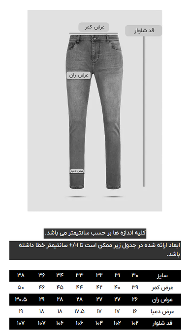 شلوار جین،&;پارچه تهیه شده از کتان،&;سنگ شور شده با&;آنزيم جهت ثبات رنگ،&;دارای جیب،&;دارای بند کمر جهت استفاده از کمربند