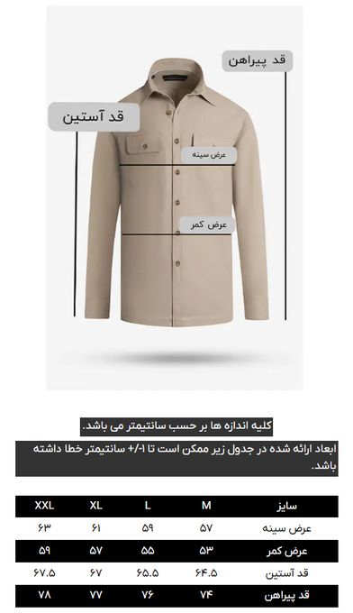 پیراهن آستین بلند،&;دارای دو جیب دکمه دار، پیش کار دکمه های پرچی،&;ثبات رنگ در شستشو