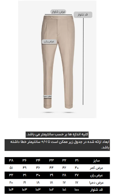 شلوار پارچه ای، دارای سگک استیل، دارای پیله،&;دمپا دوبل پاکتی