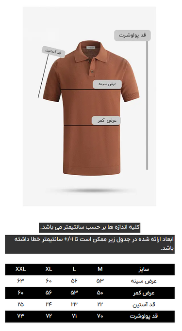 پولوشرت آستین کوتاه ، دارای کشبافت در یقه و سرآستین ها، دارای دو چاک در بغل، ثبات رنگ در شستشو