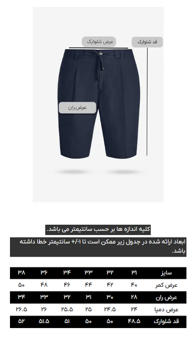 شلوارک پارچه ای، پیش کار تک دکمه، دارای جیب ساعتی