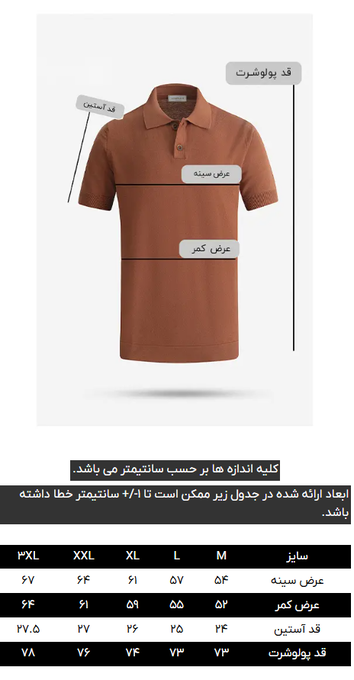 پولوشرت آستین کوتاه ، دارای کشبافت در یقه و سرآستین ها،&;دارای دو چاک در بغل، ثبات رنگ در شستشو