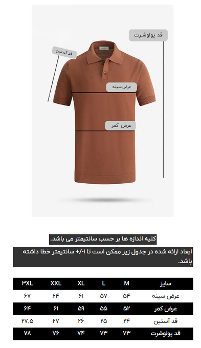پولوشرت آستین کوتاه ، دارای کشبافت در یقه و سرآستین ها،&;دارای دو چاک در بغل، ثبات رنگ در شستشو