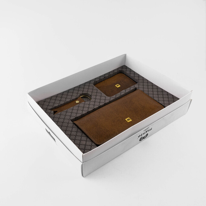 - ست کیف پول کتی مردانه مدل Y108 پتینه کاکائویی
