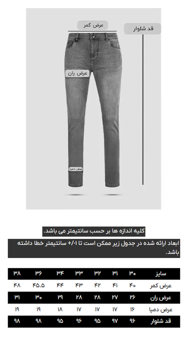 شلوار مردانه جین،&;پارچه تهیه شده از کتان، پیش کار تک دکمه، سنگ شور شده با&;آنزيم جهت ثبات رنگ،&;دارای جیب،&;دارای بند کمر جهت استفاده از کمربند