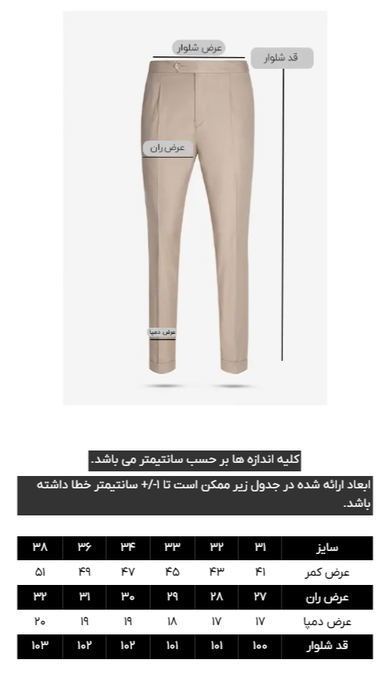 شلوار پارچه ای، دارای الاستین جهت راحتی بیشتر