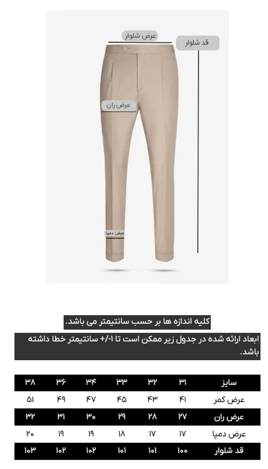 شلوار پارچه ای، دارای الاستین جهت راحتی بیشتر