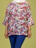 - بلوز زنانه سایز بزرگ کرپ طرح دار یقه گرد آستین سه ربع ملیکا سرخابی