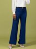 شلوار زنانه پارچه ای کرپ کنزو از بالا کشاد ریزشی کلاسیک پرسته آبی کاربنی
