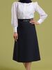 - دامن زنانه نیم کلوش میدی کرپ کلاسیک آلوین سرمه ای