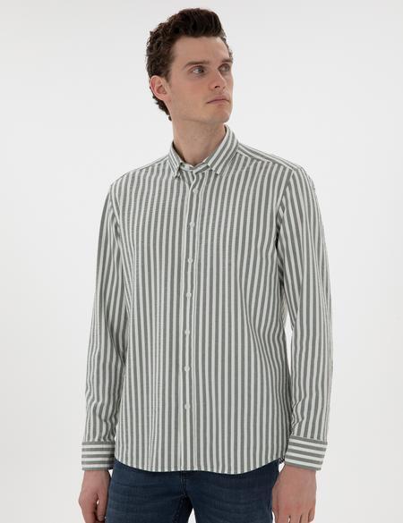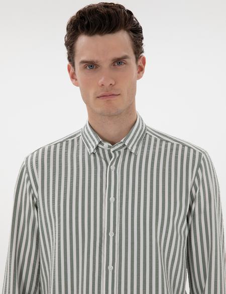 پیراهن آستین بلند پیر کاردین با کد 50301533-VR027 ( Haki Regular Fit Çizgili Uzun Kollu Gömlek )