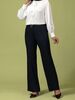 شلوار زنانه پارچه ای کرپ کنزو از بالا کشاد ریزشی کلاسیک پرسته سرمه ای روشن