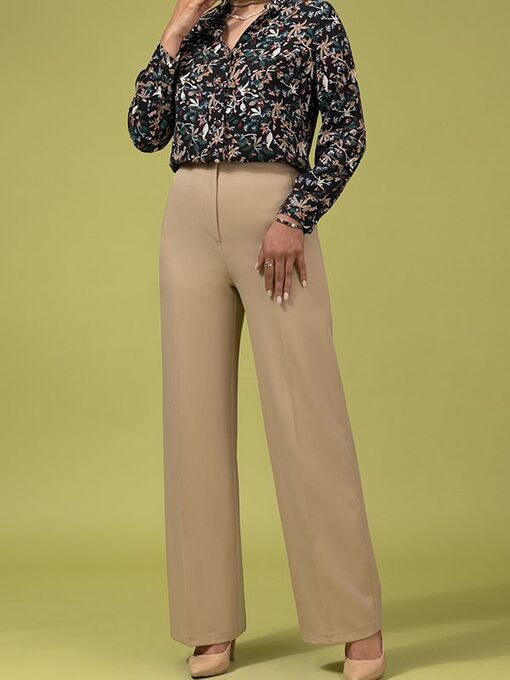 شلوار زنانه فاق بلند کرپ از بالا گشاد بهناز نسکافه ای