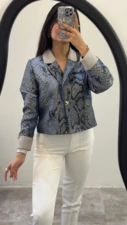 کت زنانه کلاسیک کرپ دیپلمات یقه انگلیسی دارای جیب مهنام کرم